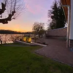 Das Seehaus Buckow Villa, situada a 2 km del Wurzelfichte, cuenta con una terraza con vistas al lago.